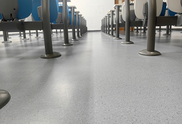 在核心性能表現上,大巨龍福龍 700 系列同質透心PVC地板精準匹配教學場景需求。課堂上,其卓越的吸音性能成為 “靜音守護者”—— 地板材質本身具備良好的隔音阻尼效果,能有效吸收腳步聲、桌椅挪動聲及外界環境噪音,大幅降低課間走廊喧鬧對課堂教學的干擾,讓師生們在安靜的氛圍中專注教學與學習,顯著提升課堂效率。而在課間休息時段,地板的防滑性能盡顯優勢:獨特的表面紋理設計增大了摩擦力,即便地面不慎灑水或出現潮濕情況,也能強效防止學生奔跑、穿梭時滑倒,為青少年學子的校園安全筑牢防線。