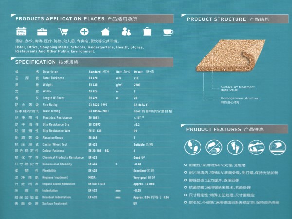 凱立龍蒙哥馬利地板系列 具有抗菌和防霉的特點,同時不含甲醛等有害物質,是非常環保的產品。該地板符合EN 469{34-43} 項規定,其耐磨性達到 的T 標準,該產品具有翻新功能,表面打磨拋光后紋理不變,適合于人流量大的地方使用。