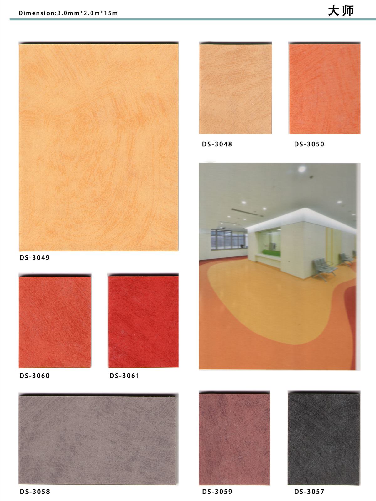 凱立龍大師系列3.0厚度商用pvc卷材地板是多層發(fā)泡背層pvc卷材地地板材料,可供 2米寬規(guī)格的卷材,耐磨等級(jí)為T 級(jí)。表面花紋圖案在透明耐磨層 的保護(hù)之下經(jīng)久不變。玻璃纖維加強(qiáng)層及舒適背層使產(chǎn)品具有優(yōu)異的吸音性能,可達(dá)18分貝,尺寸穩(wěn)定不易變形。 該產(chǎn)品經(jīng)過UV特殊維護(hù)處理以及抗菌防霉處理,卓越的抗刮痕性及耐鞋底刮擦性能,極 易清潔保養(yǎng),終生免打蠟。大巨龍凱立龍大師系列DOP,無(wú)重金屬、無(wú)苯、無(wú)甲醛,100%符合國(guó)家相關(guān)標(biāo)準(zhǔn) ,健康環(huán)保,適用于人流量較大 的教育、辦公、零售、醫(yī)院和公共建筑等領(lǐng)域。