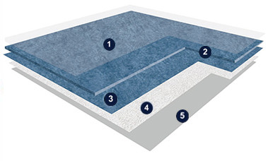 Achieve the ideal balance of residual depression/sound insulation performance: 0.06mm/18dB, glass fiber mesh reinforcement and ultra-high density foamed back layer